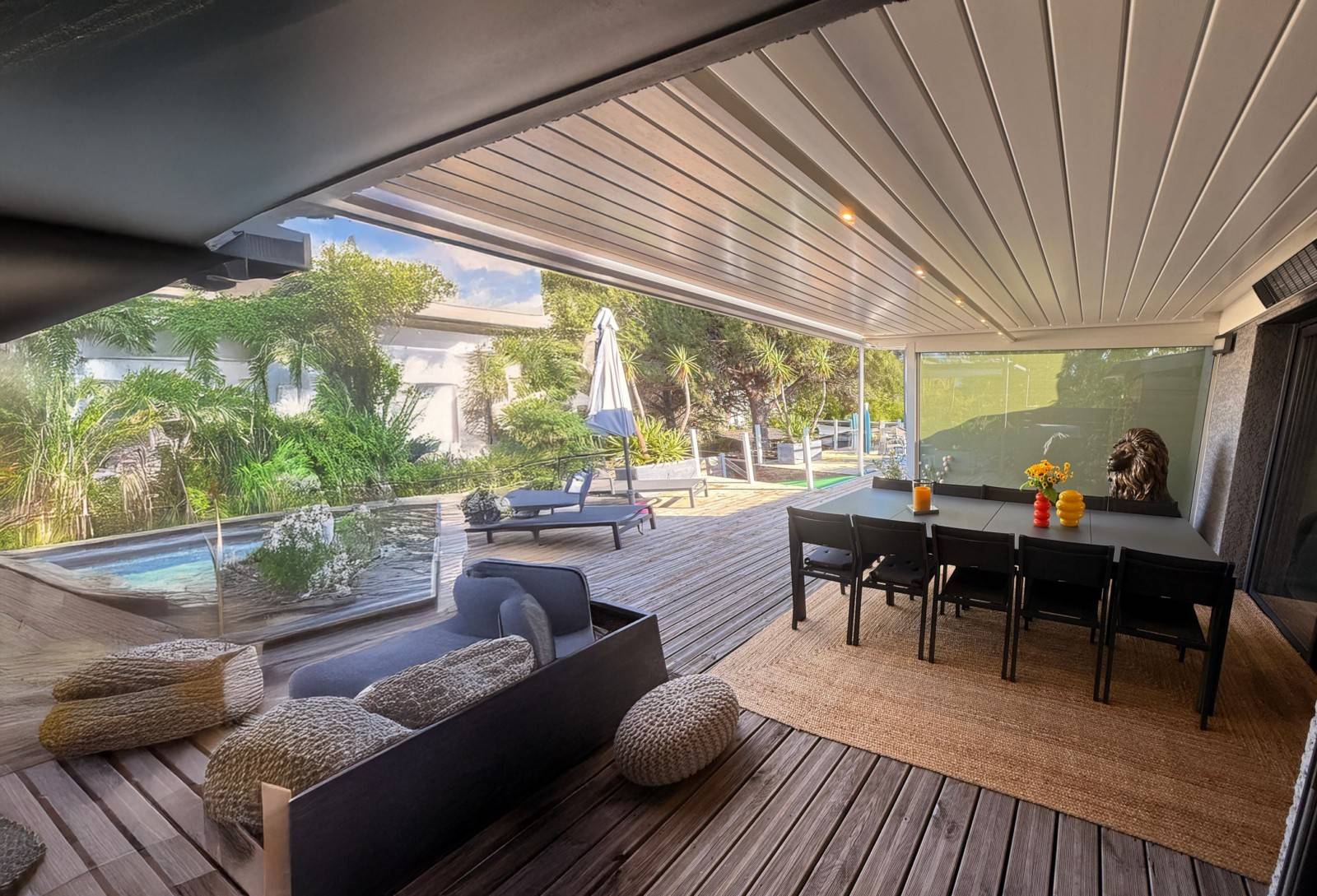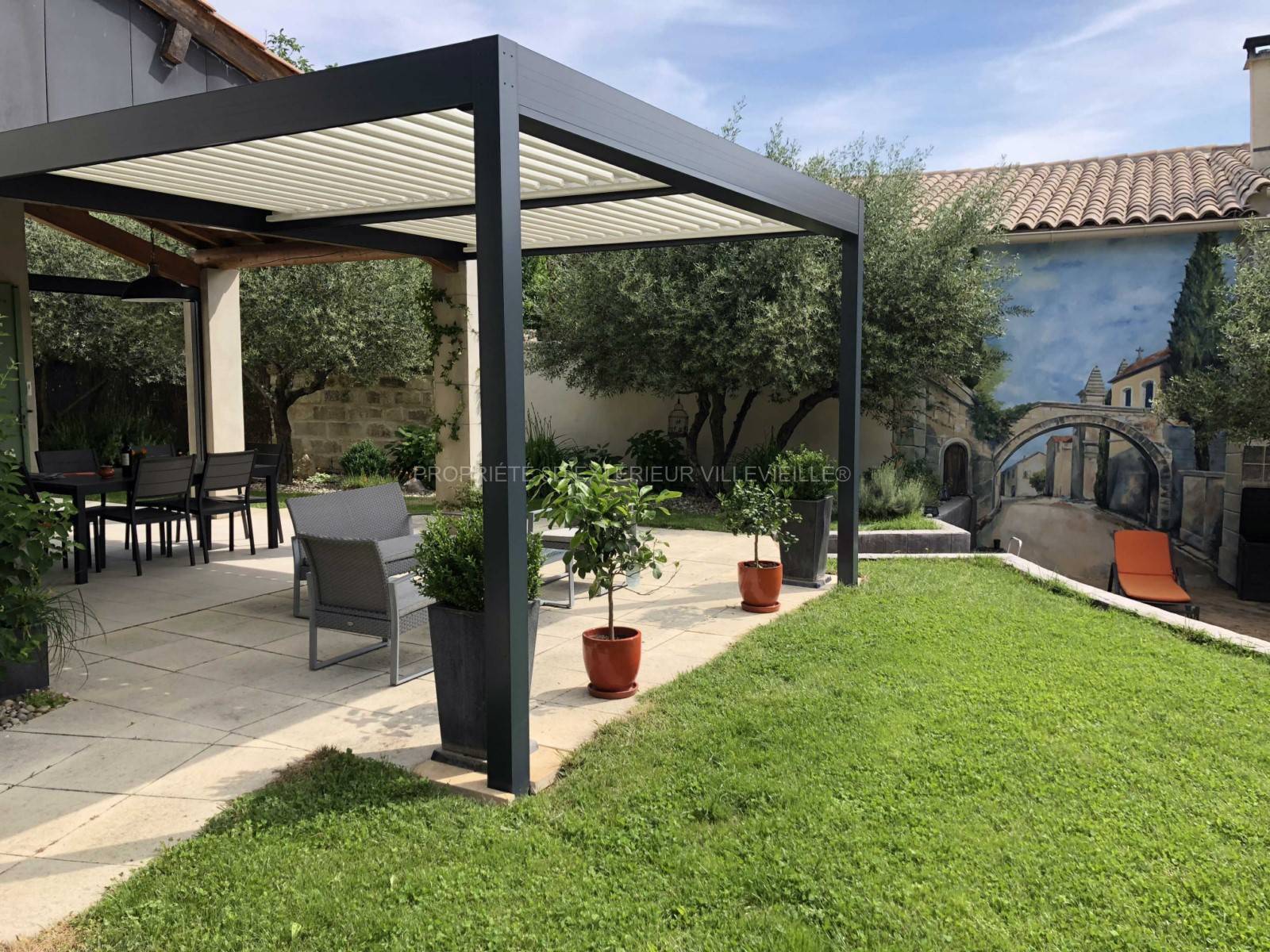 La pergola bioclimatique se distingue par sa structure en aluminium d'une é...