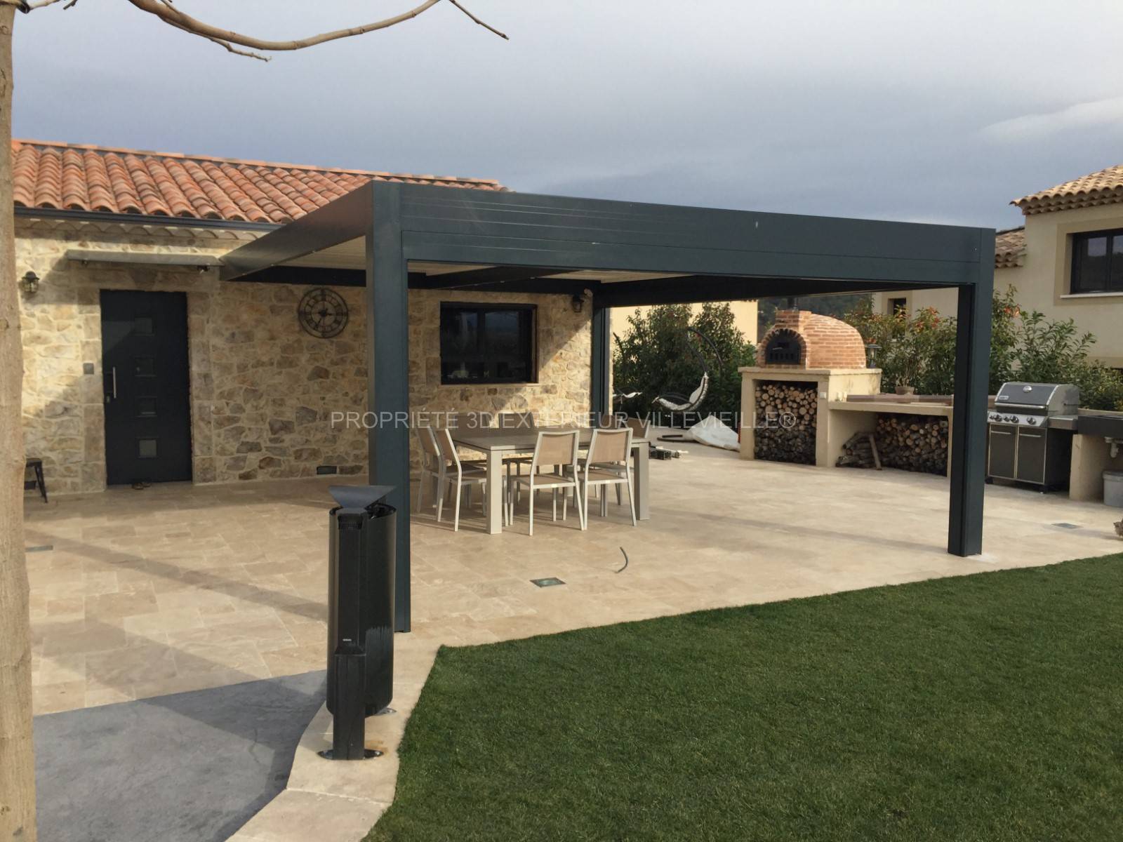 Découvrez l'excellence de nos réalisations avec cette pergola bioclimatique adossée en aluminium, une création distinctive de notre équipe, installée fièrement dans la région du Gard, près de Nîmes.