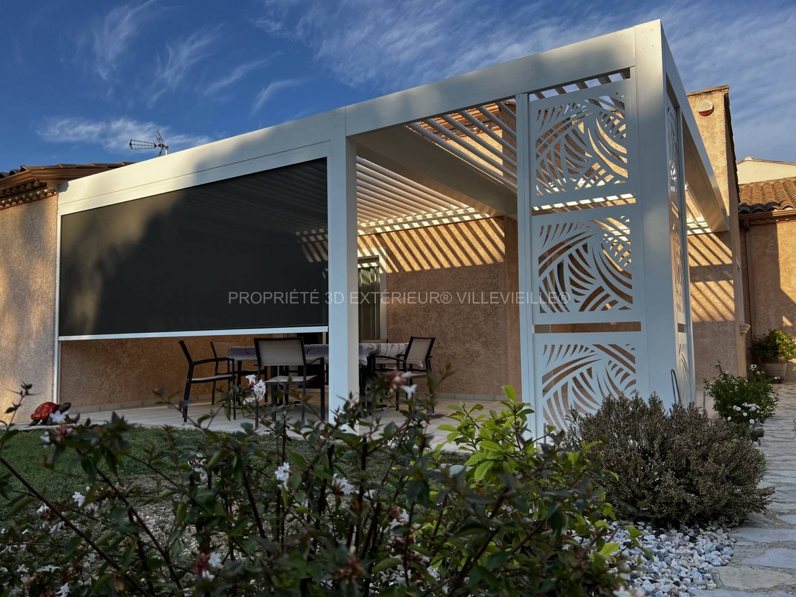 Découvrez notre pergola bioclimatique en alu sur mesure avec claustra d'angle